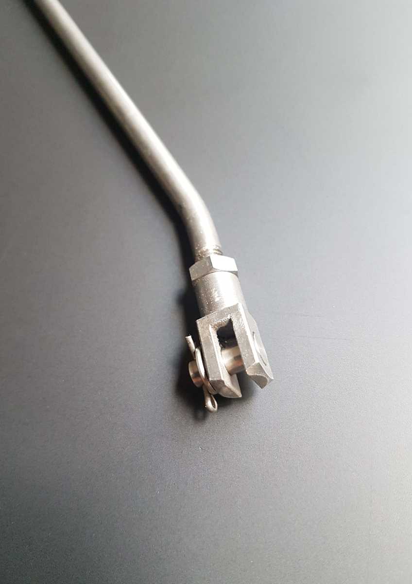 The clamping screw for the rear brake linkage (6 mm diameter).